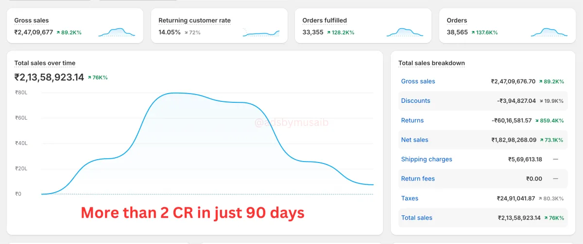 I primarily focus on e-commerce and Shopify stores, particularly those generating₹2L-₹10L per month and aiming to scale to₹50L-₹1CR+. My methods work best with businesses with solid product-market fit and are ready to commit to an ad spend of at least ₹2L per month.